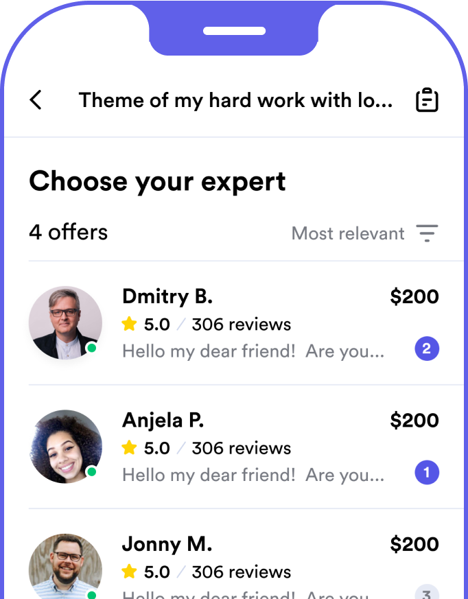 Every expert within our platform is individually trained, tested, and verified by our team. Only after they successfully pass through our verification process you can reach out to them and get help with your study assignments